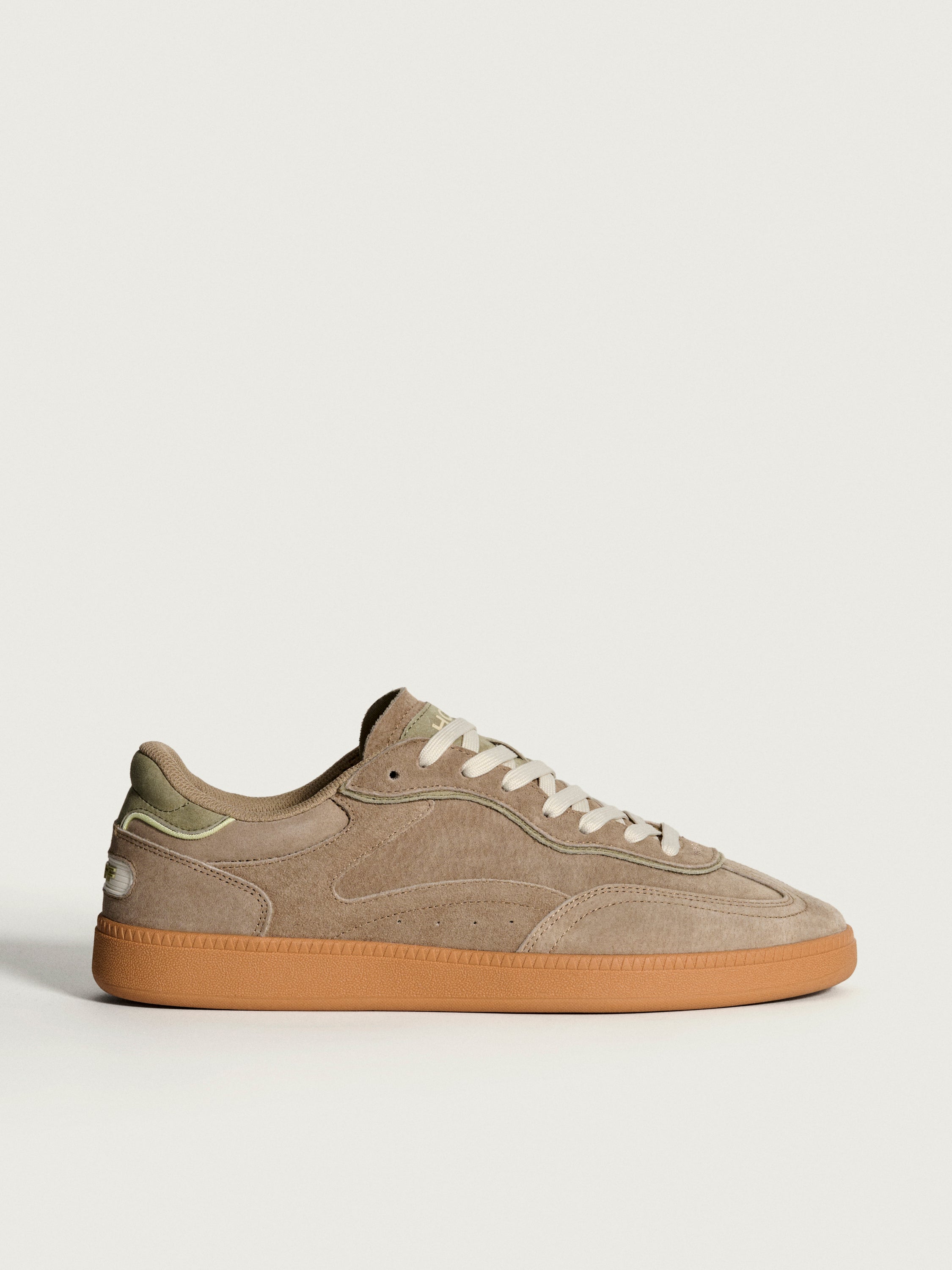 Sneaker monocolor confeccionada en piel. Detalle de logo en la parte trasera. Cierre mediante cordones.