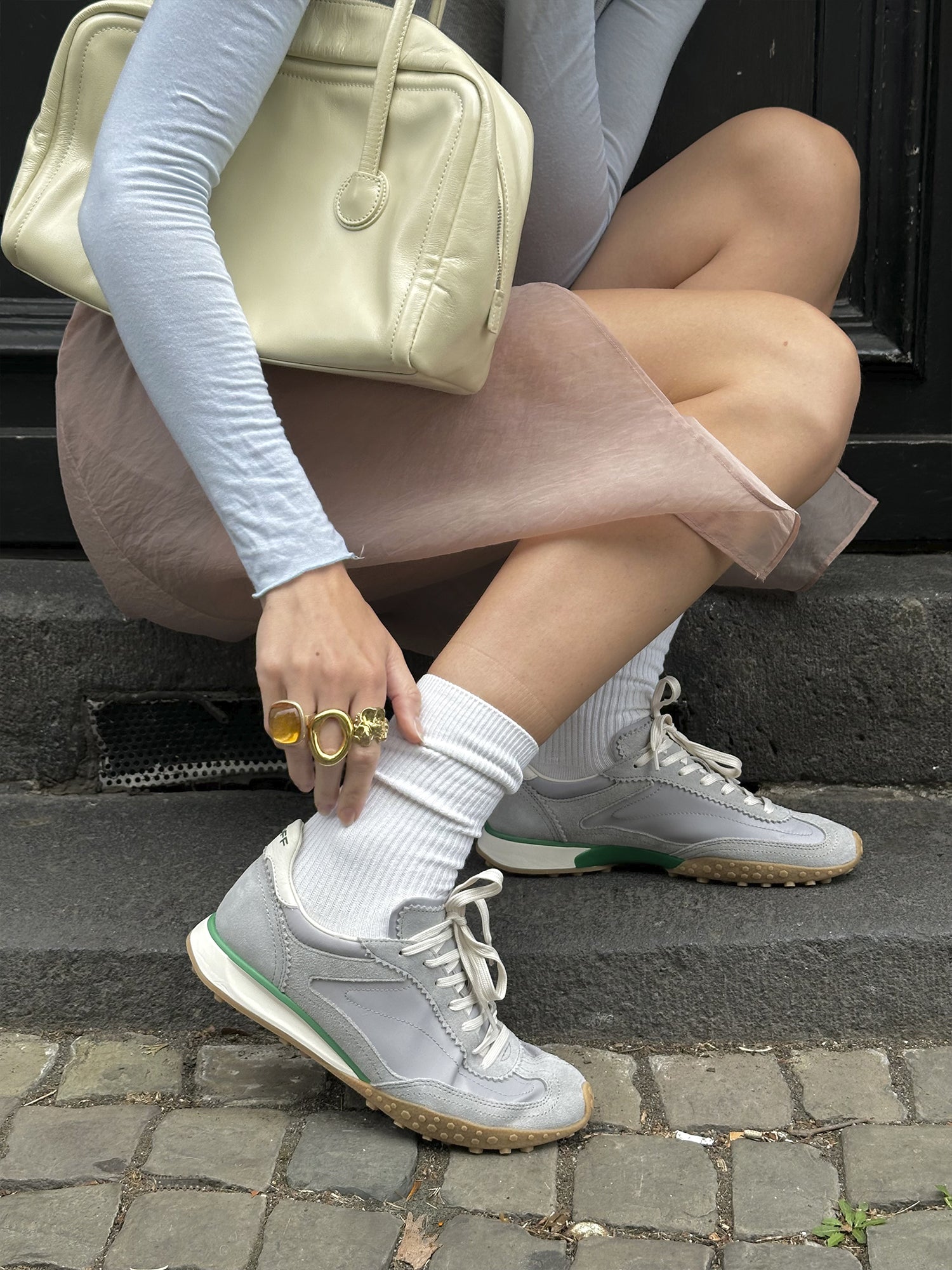Sneakers in a combination of materials. Back part in white with a logo detail. Serrated Phylon sole for better grip. Tone-on-tone lace-up fastening.